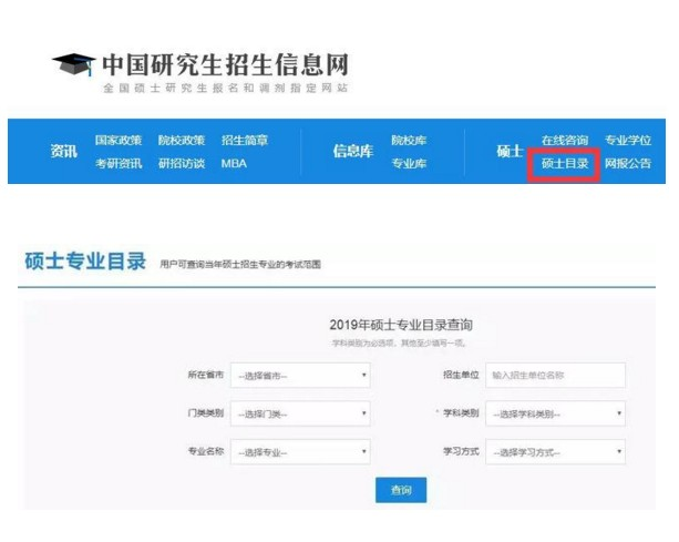 (2)然后點擊“碩士目錄”,看到碩士專業查詢頁面。