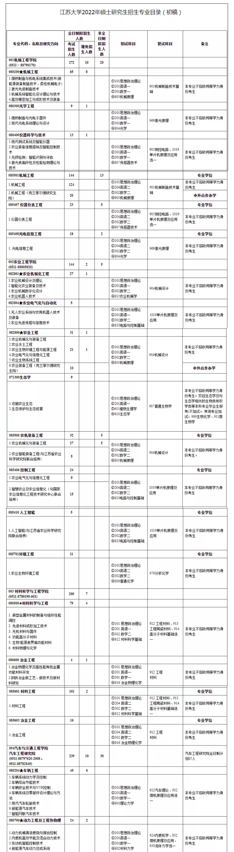 下面是江蘇大學2022年碩士招生專業目錄,供大家參考!