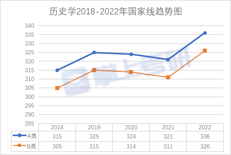 歷史學(xué)2018-2022年國家線趨勢圖(學(xué)術(shù)學(xué)位)