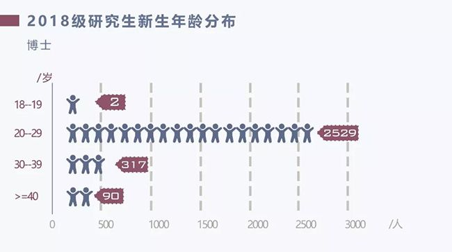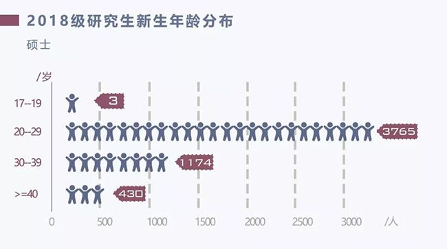 新生同學的年齡跨度較大,博士生中年齡最小的為18歲;碩士生中年齡最小的為17歲;絕大多數同學處在20-29歲區間。
