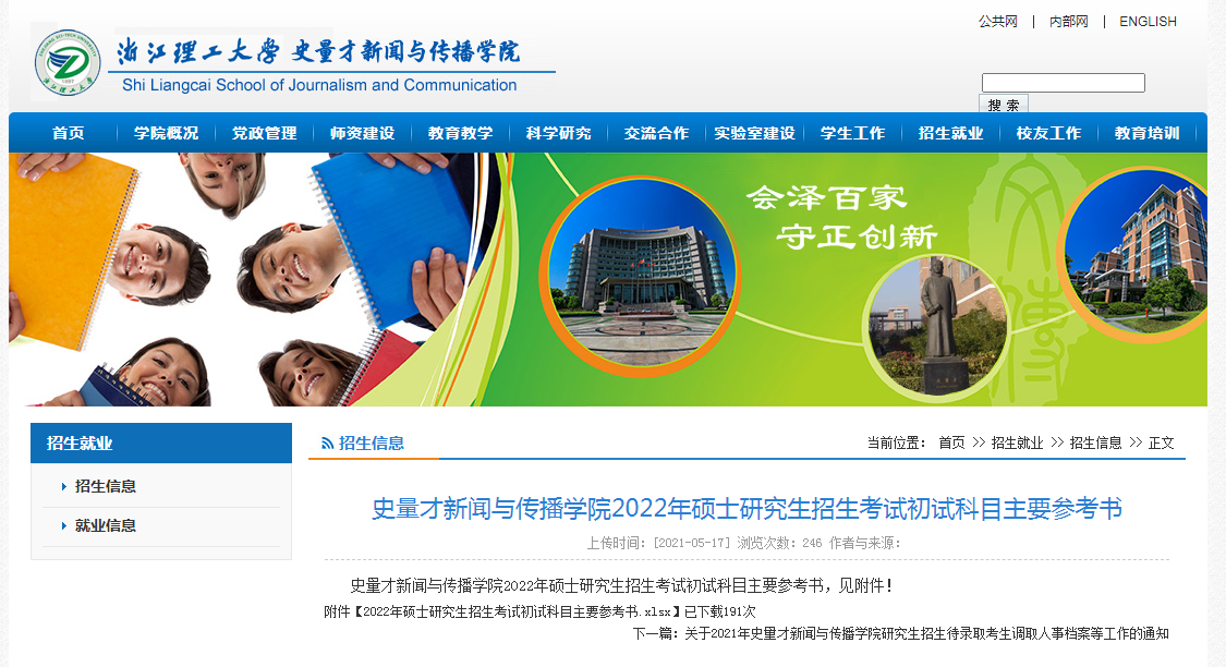 點擊查看原文:浙江理工大學史量才新聞與傳播學院2022年碩士研究生招生考試初試科目主要參考書