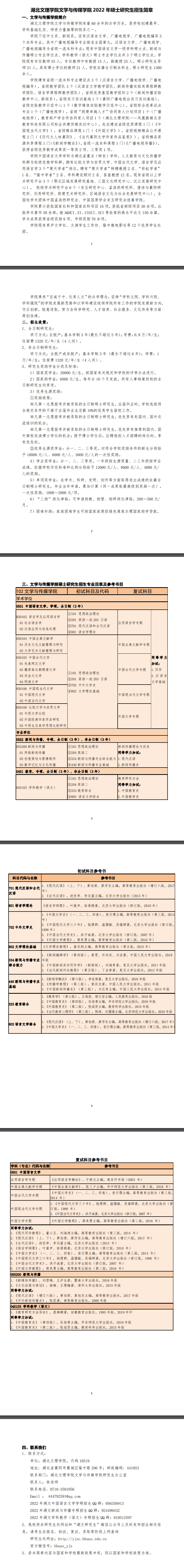 湖北文理學院文學與傳媒學院2022年碩士研究生招生簡章