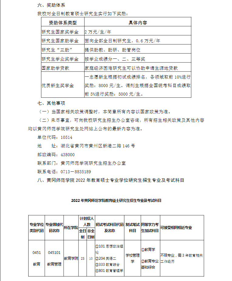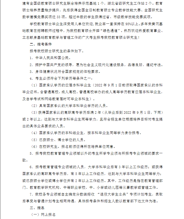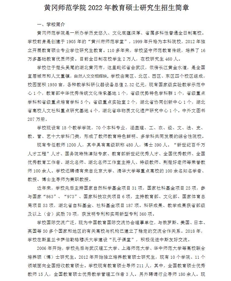 黃岡師范學院2022年教育碩士研究生招生簡章
