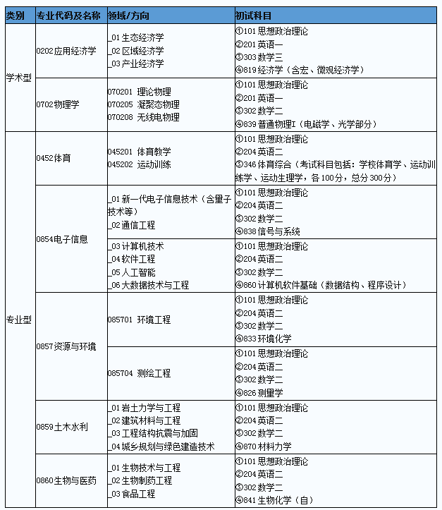 我校2022年新增7個一級學科碩士授權(quán)點,相關專業(yè)信息及初試科目如下表,更具體的招生要求、專業(yè)目錄及參考書目詳見我校2022年碩士研究生招生簡章。