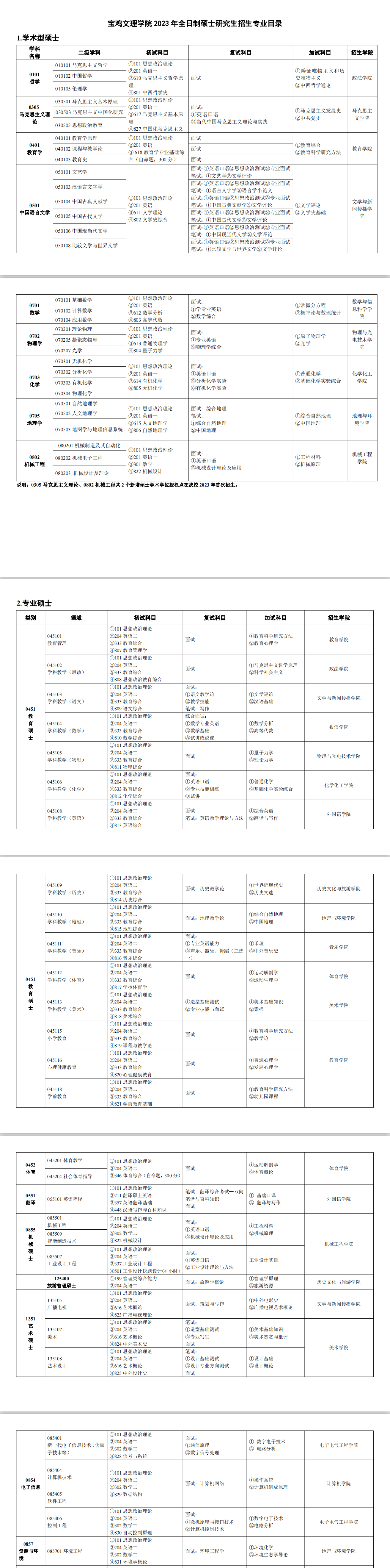 寶雞文理學院2023年全日制碩士研究生招生專業目錄