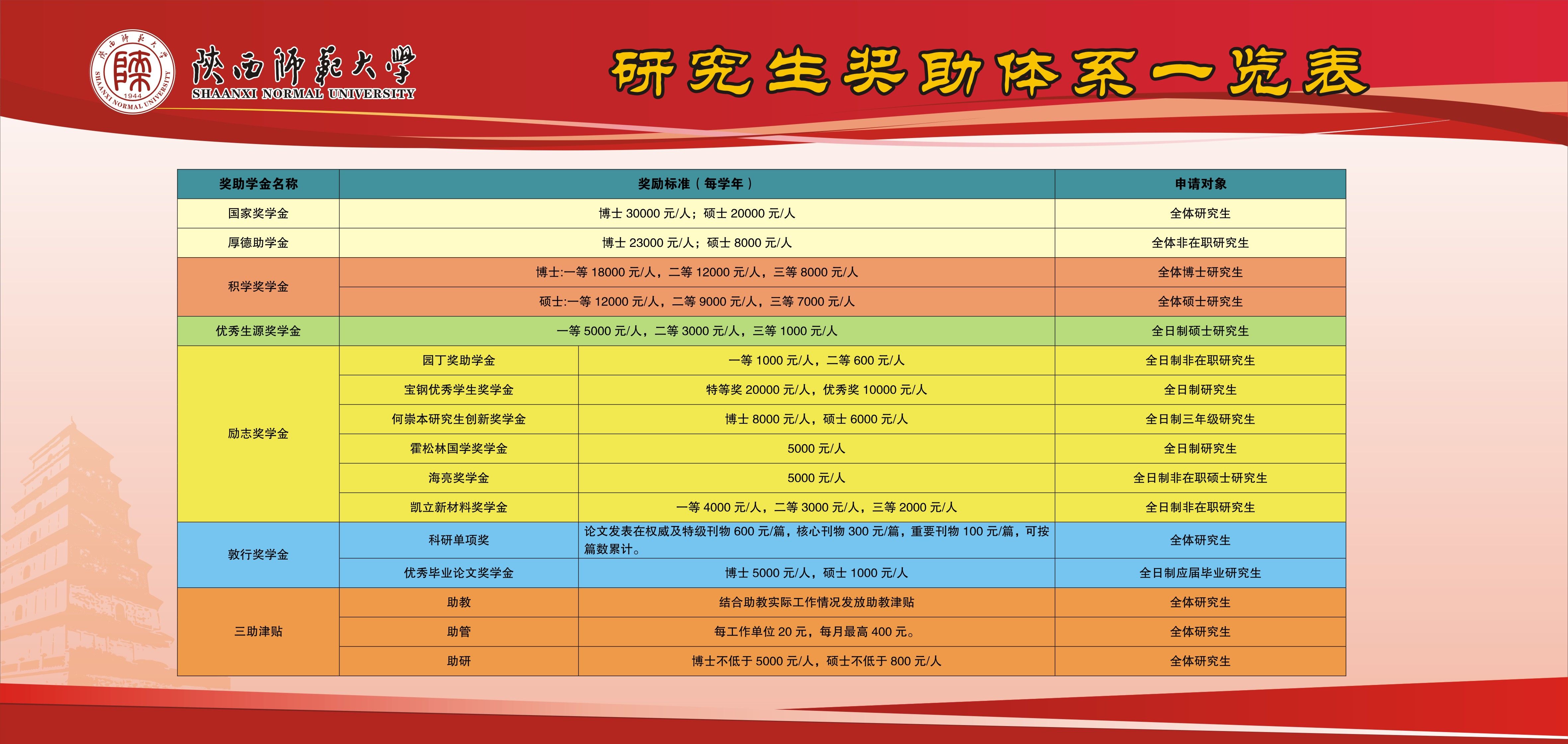 2.我校通過設立國家獎學金、國家助學金、學業獎學金、優秀生源獎學金、助學貸款、三助崗位、綠色通道等制度,建立了多元獎助體系,為碩士研究生順利完成學業創造良好的學習和生活條件。具體標準依照國家和我校相關規定執行。