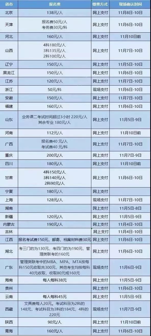 以下是各省市2019考研報名費(fèi)及現(xiàn)場確認(rèn)時間,以及現(xiàn)場確認(rèn)的一些注意事項,建議收藏備用,希望對小伙伴們有幫助。