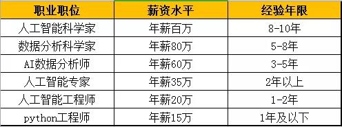 2018年python、大數據、人工智能從業者薪資數據顯示,北上廣三地的平均薪資水平分別為29036元、25163元和23036元,年薪幾十萬甚至百萬。人工智能是未來的發展方向,國家政策也在強力扶持,可以說學人工智能類專業就相當于捧上了“金飯碗”。