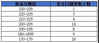 非全日制錄取57人;復試最高分237分,最低分170分;錄取初試最高分237分,最低分170分。