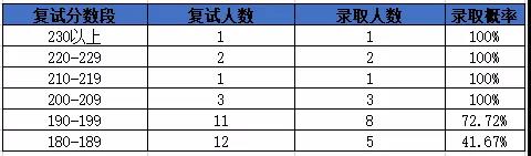 參加復試全日制30人,錄取20人,復試錄取比為1.5;復試最高分242,最低分183;錄取初試最高分242分,最低分184分。