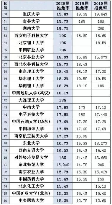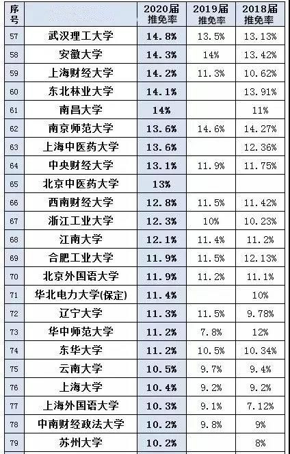 ?其中,北京科技大學、西安電子科技大學、中國礦業大學、南京理工大學、南京航空航天大學等,屬于最早的一批設立研究生院的59所高校,因此推免率超過15%。