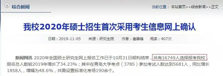 7.青島大學青島大學2020考研報考人數達16749人,同比大增34.23%。