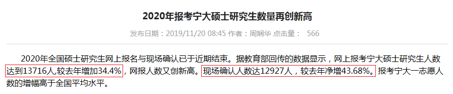 8.寧波大學2020年寧波大學網報人數達到13716人,現場確認人數達12927人,比2019年激增43.68%,增長幅度遠高于全國平均水平。