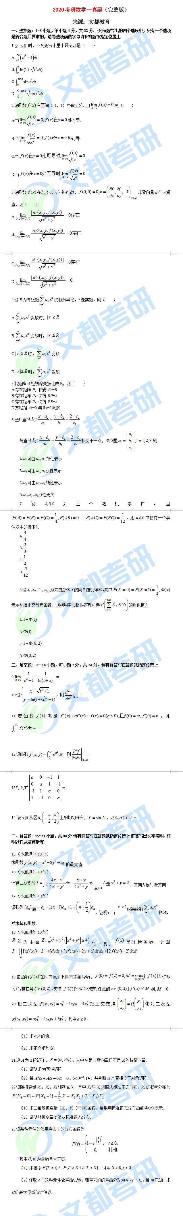 上面就是給大家整理的2020考研數(shù)學(xué)一真題pdf完整版的相關(guān)內(nèi)容,如有更多疑問(wèn),請(qǐng)及時(shí)咨詢(xún)?cè)诰€老師。