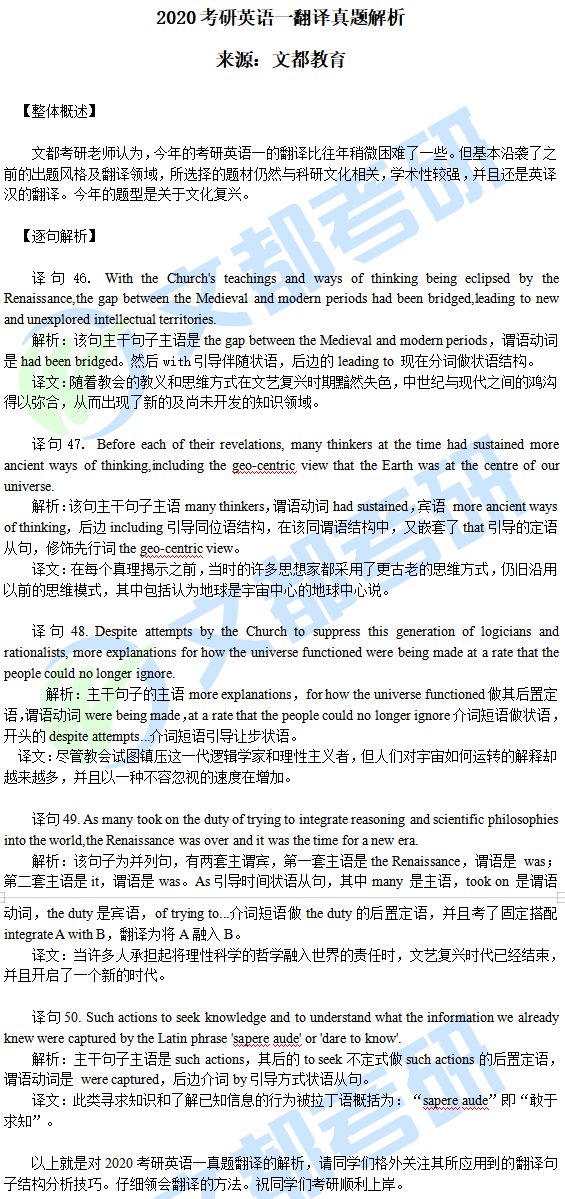 上面就是給大家整理的2020考研英語(一)翻譯真題答案解析的相關(guān)內(nèi)容,如有更多疑問,請及時咨詢在線老師。