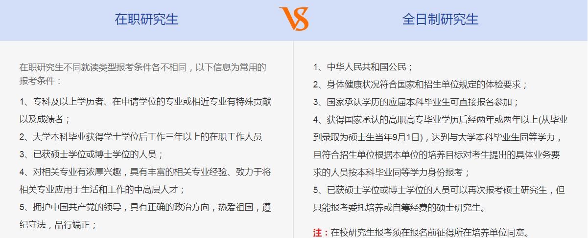 一、在職研究生與全日制研究生報考條件
