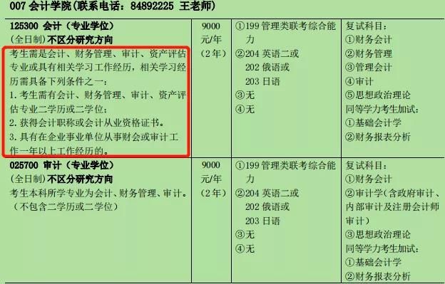 跨考限制:只接收會計學、財務管理、審計學三個本科專業考生