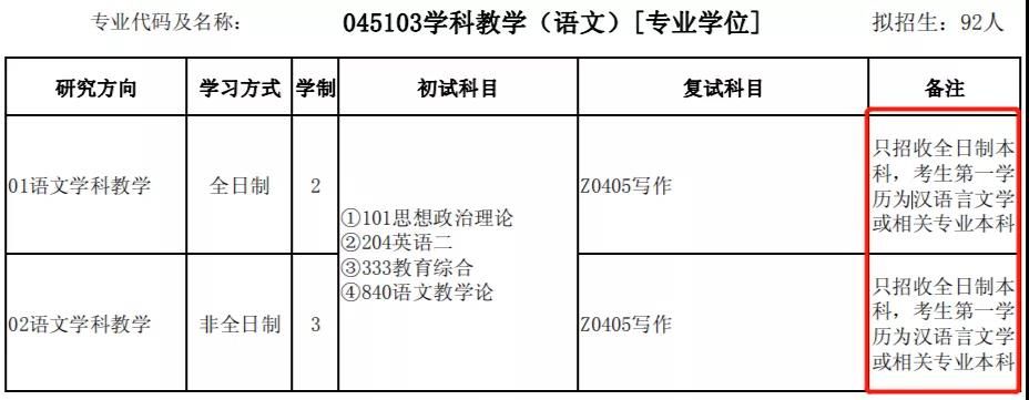 學(xué)科教學(xué)(語文)方向只錄取本科為漢語言文學(xué)專業(yè)的考生。