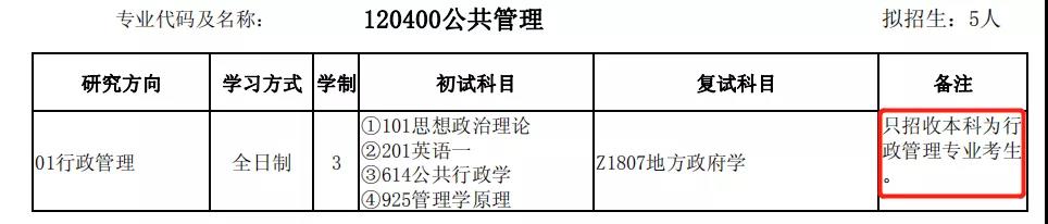 公共管理專業(yè)的行政管理方向報(bào)考條件:只招收本科為行政管理專業(yè)考生