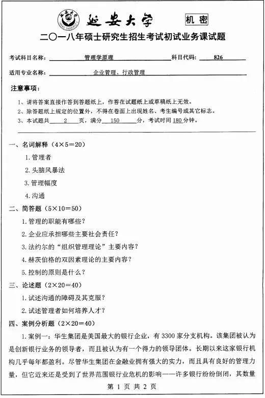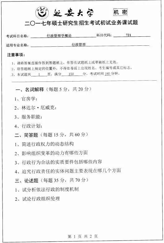 2020年延安大學行政管理專業考研復試線、歷年真題