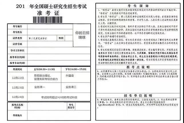 去年考前一周,考生可憑網(wǎng)報用戶名和密碼登錄“研招網(wǎng)”自行下載打印《準考證》?!稖士甲C》使用A4幅面白紙打印,正、反兩面在使用期間不得涂改??忌鷳{下載打印的《準考證》及有效居民身份證參加初試和復試。