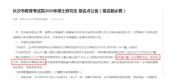 或者是像長沙教育考試院報考點:外省戶籍,長沙高校畢業一年內無工作報考長沙高校的考生,也不需要提供其他額外材料。