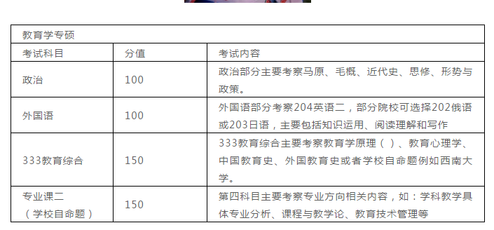 教育學專碩:2010年開始全國聯(lián)考,專業(yè)課為各院校自主命題。