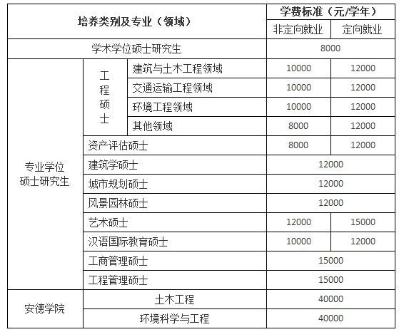 非全日制碩士生學費標準與相同專業全日制碩士生學費標準相同,詳見下表。
