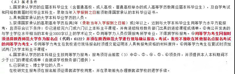 陜西師范大學教育學接受同等學力考生報考,但是在教育部要求基礎上,額外要考生進修6門以上本科課程、公開發(fā)表3000字以上專業(yè)相關論文、不可跨專業(yè)報考。