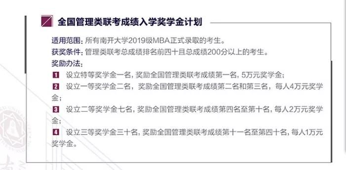 注:當年未參加全國管理類聯考或全國管理類聯考沒有報考南開大學商學院專業學位MBA項目的考生不享受此獎勵計劃。