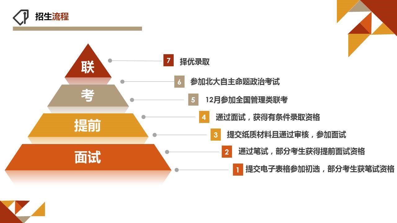 注:①、所有報考北京大學工學院工程管理碩士的考生,必須參加提前復試才可獲取報考資格,即未經提前復試而直接參加全國聯考者,無論成績高低均不予錄取。②、每階段具體流程請參閱后文各分項介紹。