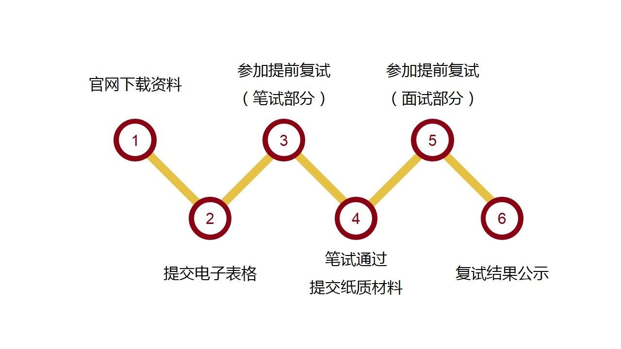 全部申請人都須在規定時間內提交申請材料,經過材料評審,擇優給予申請人提前復試資格。通過提前復試(包括面試與筆試)將給予部分申請人“有條件錄取”及“候補錄取”資格。