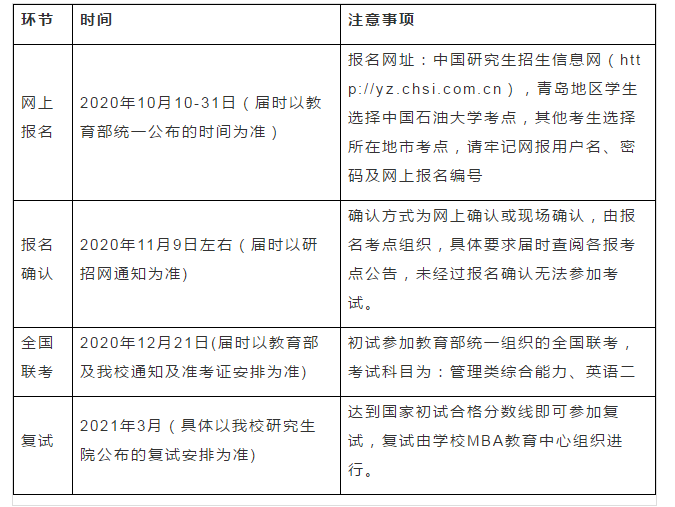 中國石油大學(華東)已公布21級MBA提前面試