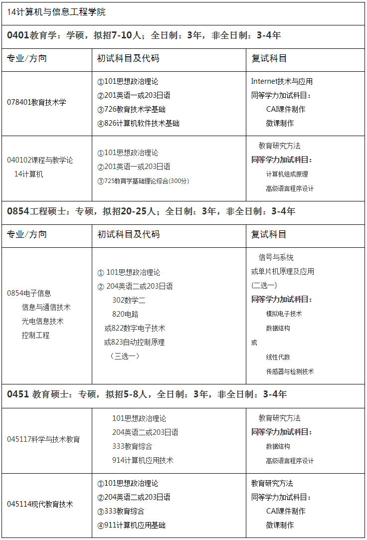 二、、2020年計算機與信息工程學院碩士研究生招生目錄