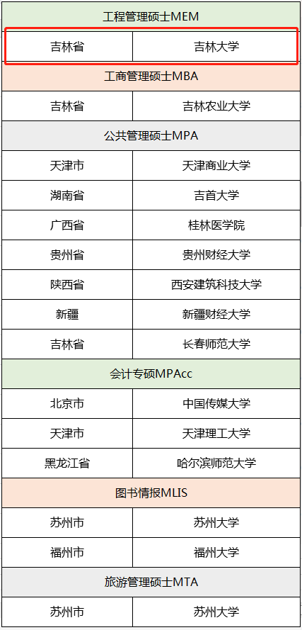 MEM項(xiàng)目新增加了吉林大學(xué)授權(quán)點(diǎn),意味著吉大MEM今年將首次招生。根據(jù)往年數(shù)據(jù),若院校項(xiàng)目第一年招生,復(fù)試分?jǐn)?shù)線則不會(huì)太高。