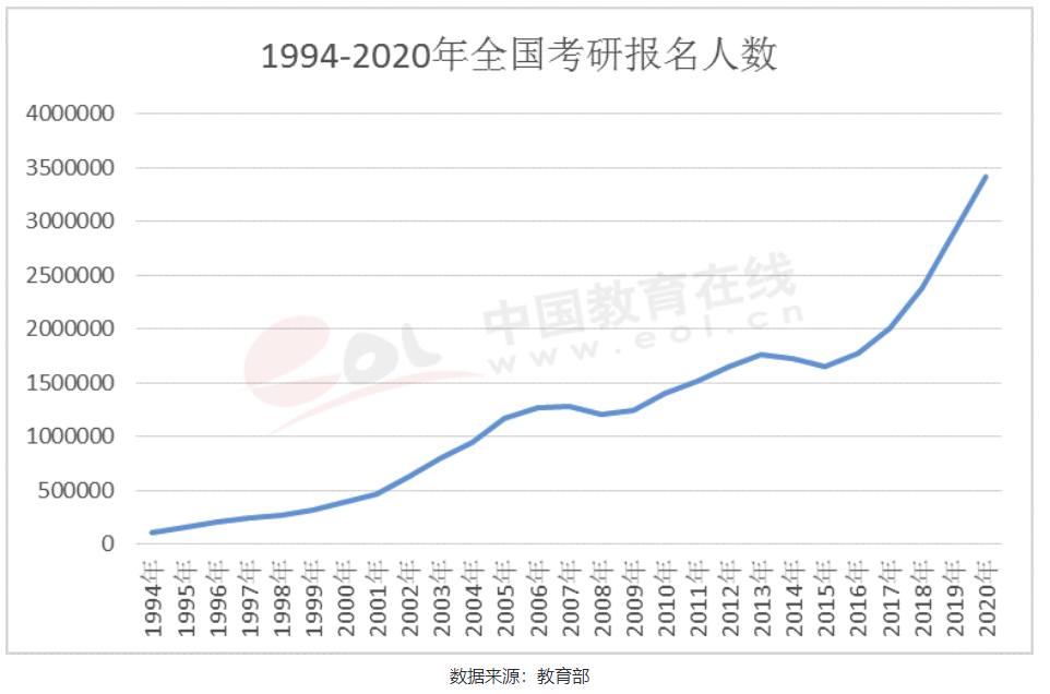 據(jù)教育部公布的數(shù)據(jù)顯示,2019年報名人數(shù)增幅達(dá)21.85%。繼2019年碩士研究生報名人數(shù)高漲之后,2020年碩士研究生報名人數(shù)再次打破紀(jì)錄,達(dá)到341萬人,較2019年增長17.59%。