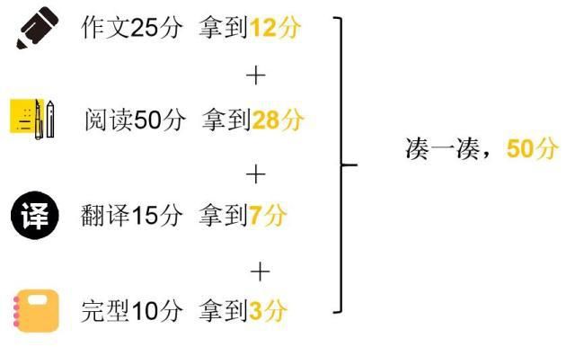 比如一上來(lái)就制定目標(biāo)是70分以上,那么英語(yǔ)確實(shí)很難。要是想過(guò)80分,那就難上加難了,這絕不是一兩個(gè)月就能速成。但是如果英語(yǔ)是你的弱項(xiàng),你的要求只是五六十分,達(dá)到國(guó)家和學(xué)校的合格線,那有何不可?
