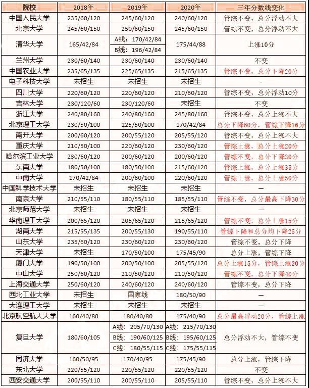 可以看出,很多厲害的院校分數(shù)線是很低的,比如清華大學和同濟大學只要175分、華南理工大學僅僅215分,湖南大學只要190分等等,前兩個是只招非全日制,而后兩個是全日制和非全統(tǒng)一劃線,從去年來看湖南大學的全日制的錄取分數(shù)要高達230-250分,所以相比而言,非全的分數(shù)還是相對較低。