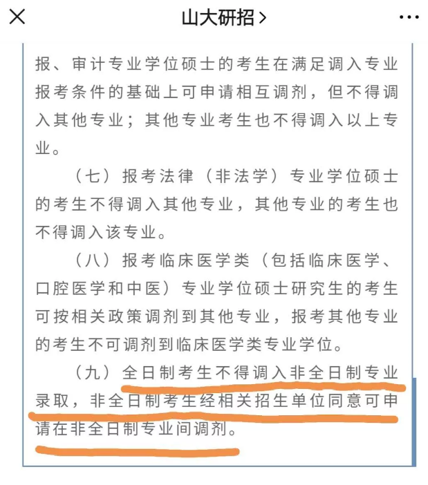 其實質(zhì)就是:允許非全專業(yè)間調(diào)劑,但是不允許以往的全日制調(diào)劑到非全。