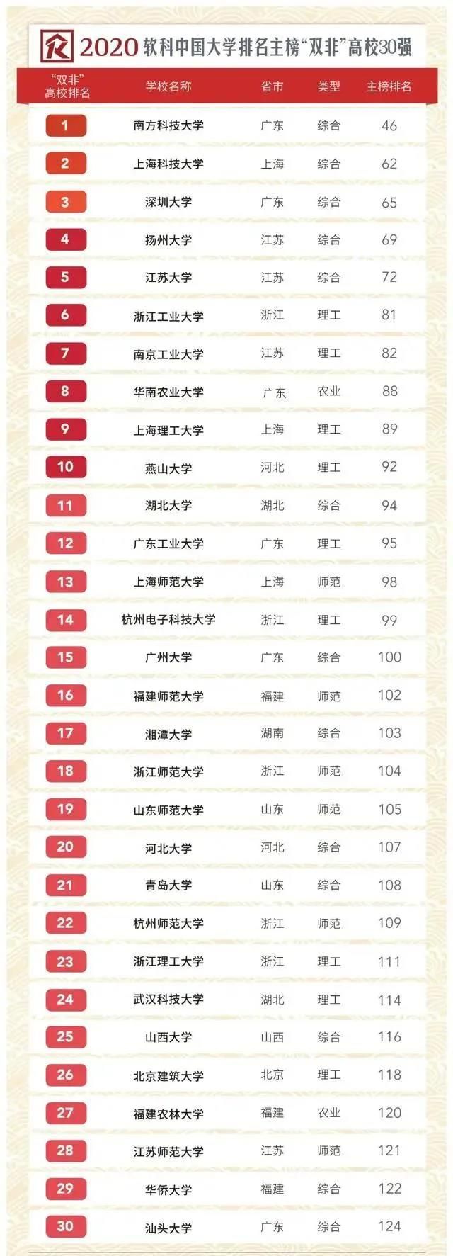 今年一些實力超群但之前未能進入“雙一流”建設名單的“雙非”高校(非985,非211),榜上表現格外令人關注。