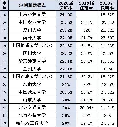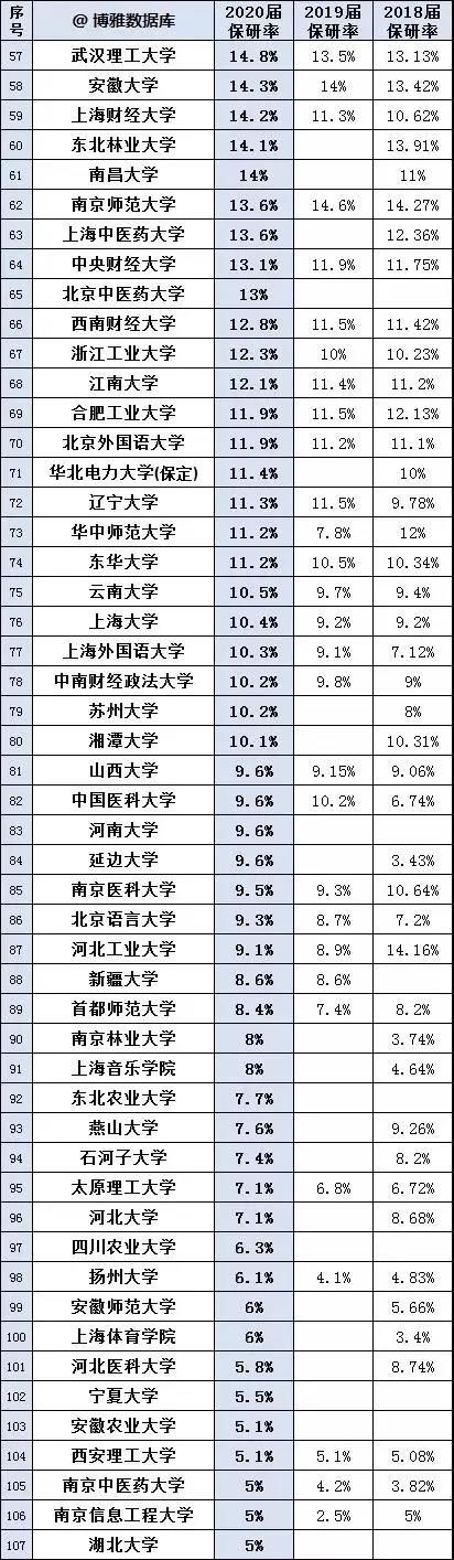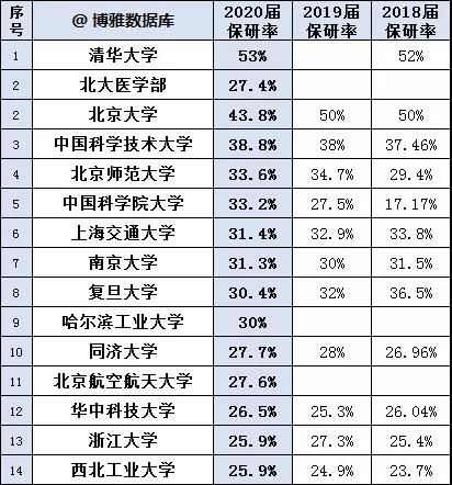 保研率最高的是北京大學醫學部,高達65%。超過了學生總數的一半!要知道北京大學醫學部在高考時候就是單招,一般來說考入北大醫學部的本科生大部分會直接讀本校碩士,保研率高就可以理解了。