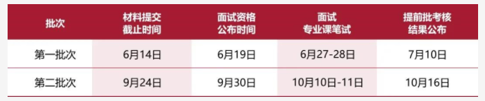 4.參加提前面試、專業課筆試。面試內容為綜合素質面試,筆試內容為專業課。考生在面試報到時進行報考資格查驗。
