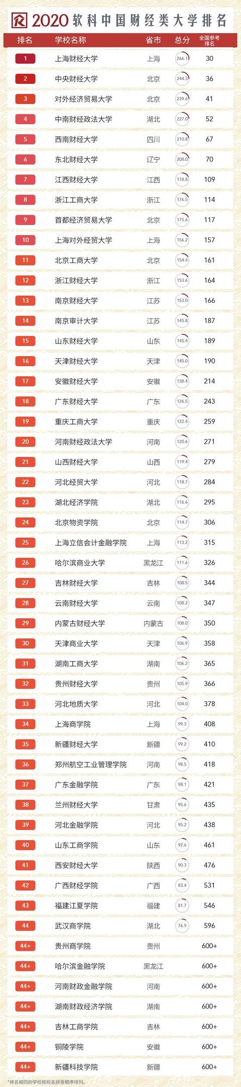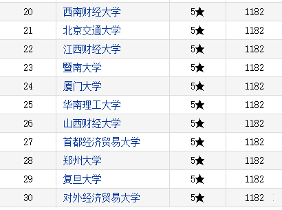 對于財經學專業,中國人民大學,中央財經大學,對外經濟貿易大學,西南財經大學,中南財經政法大學包攬前五名。